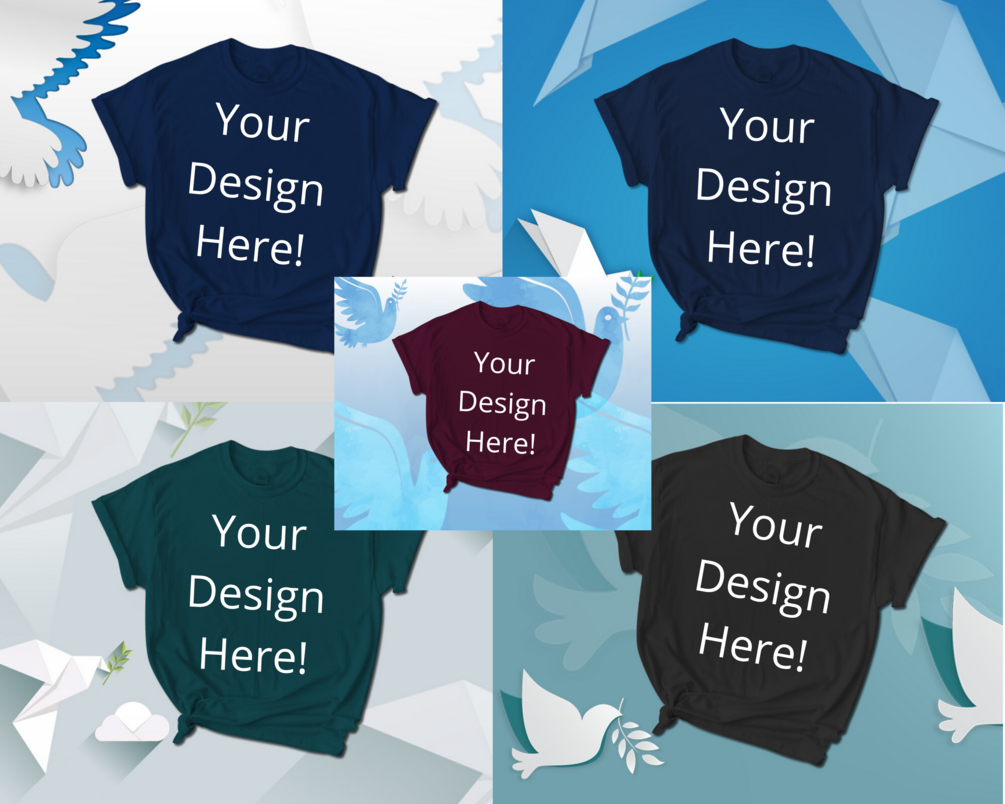 These mockups are great to use to showcase your t-shirt designs for all your print on demand platforms. Featuring 5 specially made designs for National Bird Day on January 5th. These designs will be digitally delivered to you without words on the shirts so you can upload all your great designs and have one of a kind mockups.